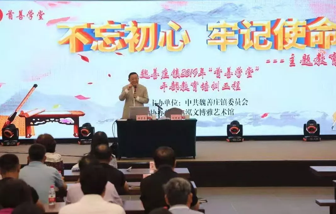 此次培训专门邀请到了著名文化学者、深圳市委宣传部巡视员、深圳“设计之都”推广办主任韩望喜博士,为大家解读《习近平用典》。魏善庄镇的广大干部以及泓文博雅的代表,一同聆听了这次生动而有意义的党员干部培训课程。