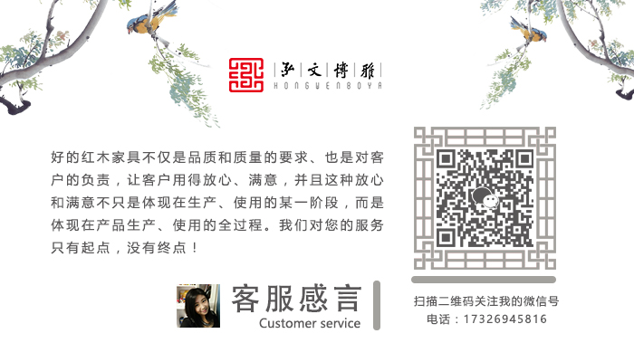 红木国家标准制定者----泓文博雅,红木家具采用天然生漆,源于植物融于植物,健康环保无污染,每一款红木家具臻品的问世,都凝聚着我们对质量保证的执着把握!如果您想了解更多有关红木家具擦漆好吗的相关信息,或者对我们的红木家具感兴趣,请点击在线客服进行咨询,或拨打我们的免费电话:400-837-9660,竭诚为您服务!