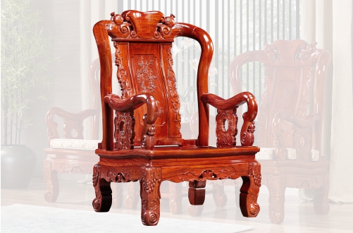 座板成弯面,曲线优美自然,与靠背扶手之线形遥相呼应,在整体厚重的体态中,将曲线的柔美、刚柔相济淋漓尽致的表现了出来。